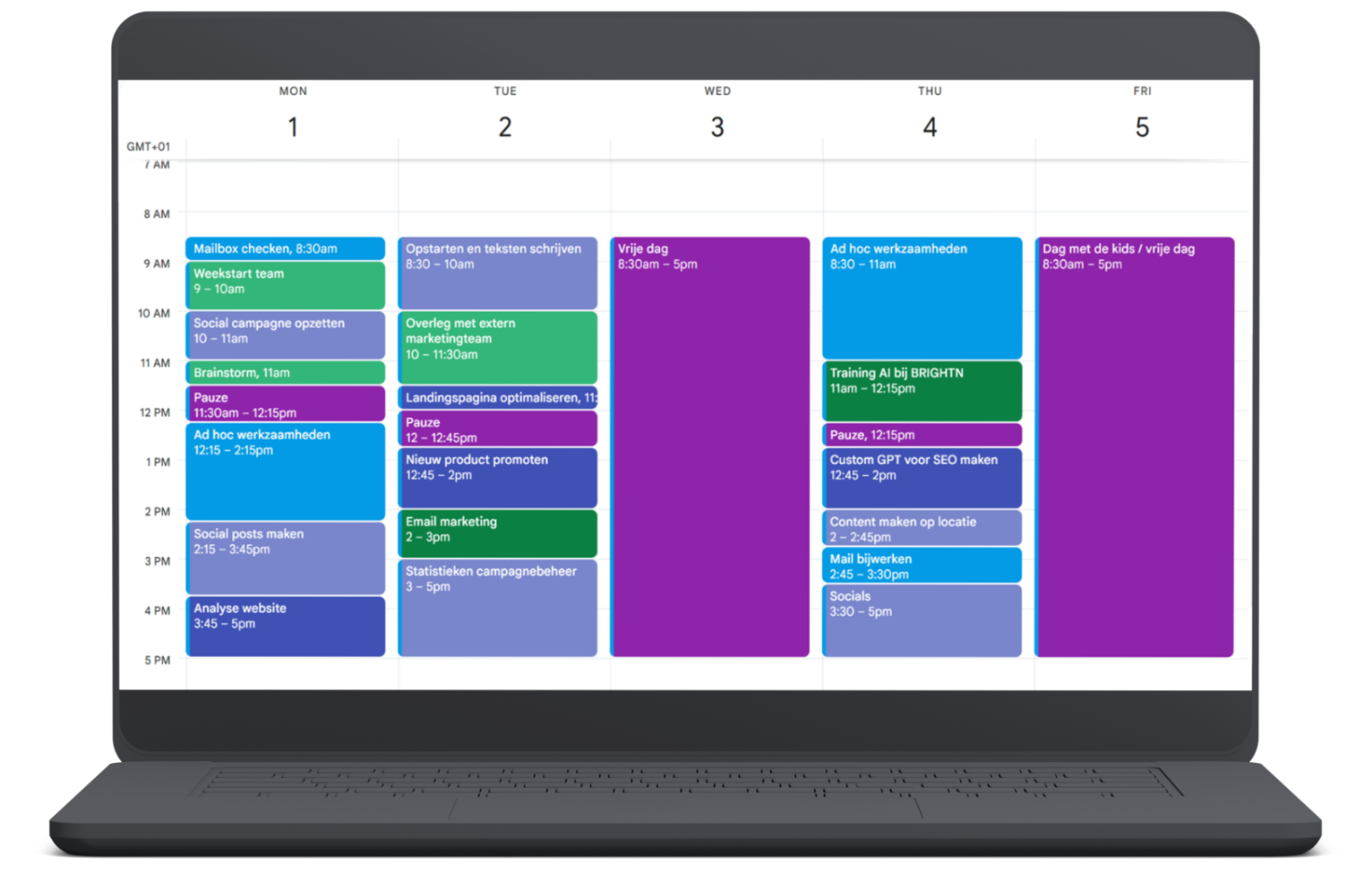 Geen dag en week is hetzelfde. Kijk hieronder maar. Dit zou zomaar eens je werkweek kunnen zijn.